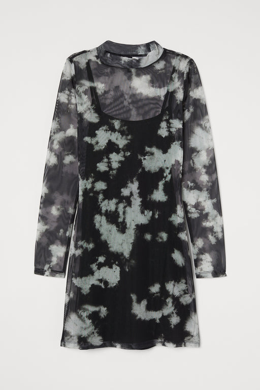 H&M Siyah Desenli Tül Elbise S