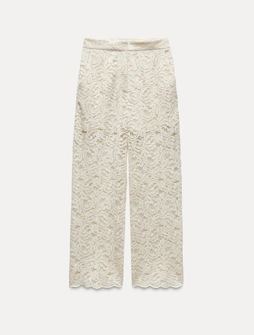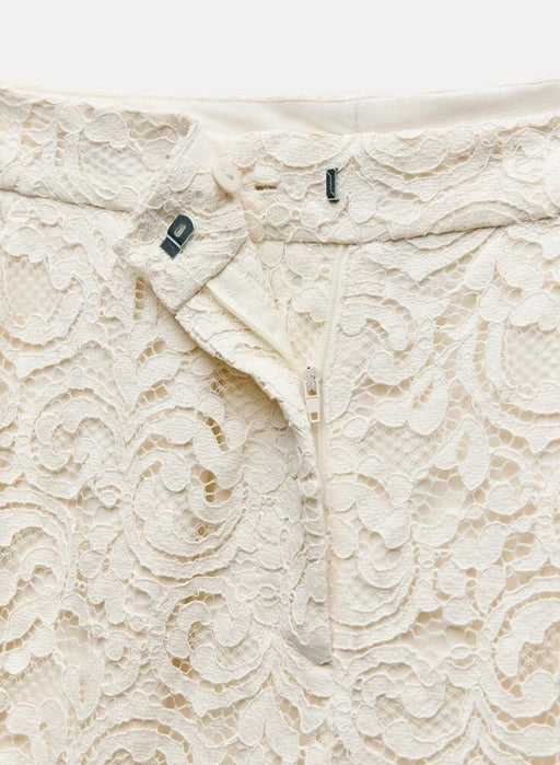 Zara Krem Dantel Detaylı Kadın Pantolon XS