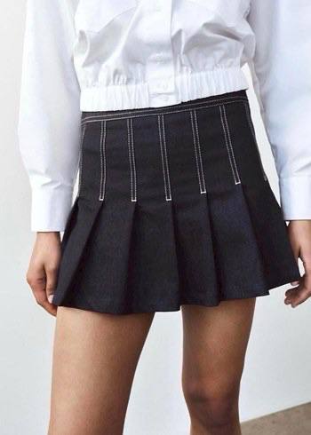 Zara Koyu Mavi Pileli Kadın Etek XS