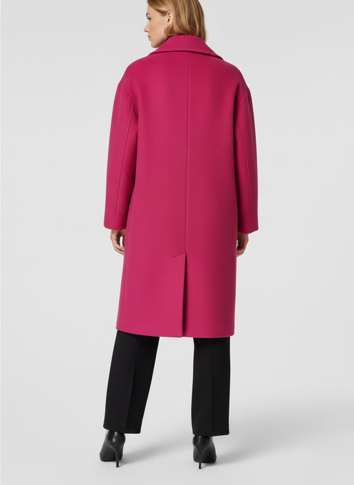 Kelebek yaka, düğme kapatmalı, kruvaze yün palto 2 adet cepli. % 75 Yün % 25 Polyester
