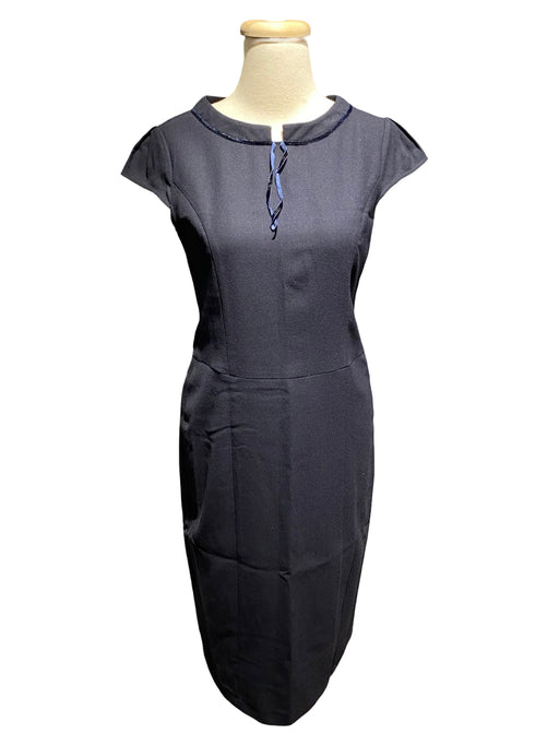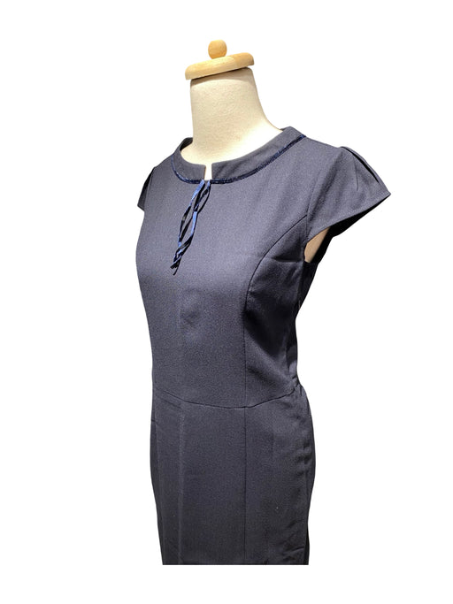 %85 Viskon, %15 yün. Yakası lacivert detaylı elbise.