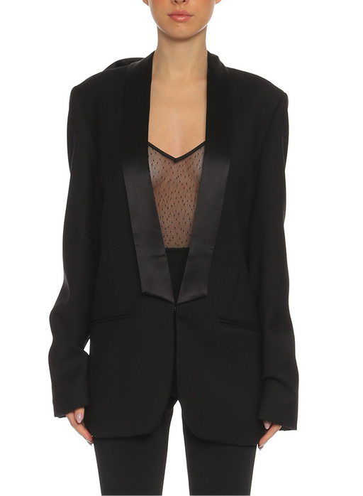 İçerik: %100 Viskoz Mankenli fotoğraf modelin duruşu için eklenmiştir. Yakası saten detaylı, blazer kadın ceket.