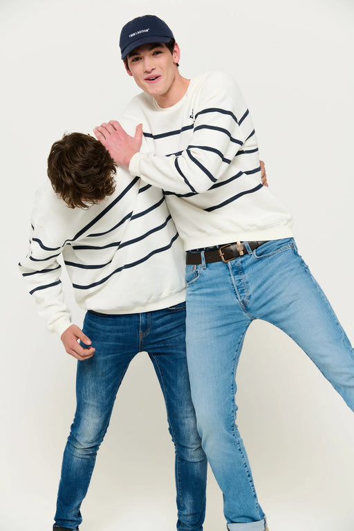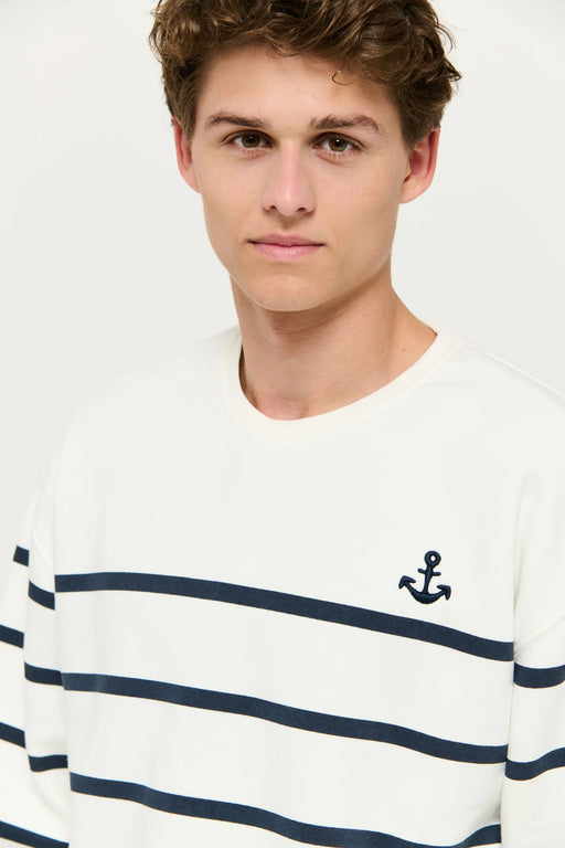 %80 Pamuk %20 Polyester. Çapa desenli, çizgili sweatshirt.