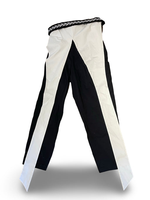 %100 Pamuk. Kemer detaylı, boyun bağlamalı, siyah-beyaz tulum.