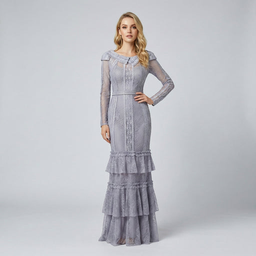 Gri lila midi dantel elbise; ön arka derin v yakalı, kroşe dantel işlemeli, kolları volan detaylı.%100 PolyesterModel boyu: 180 cm. Renk: BeyazB...