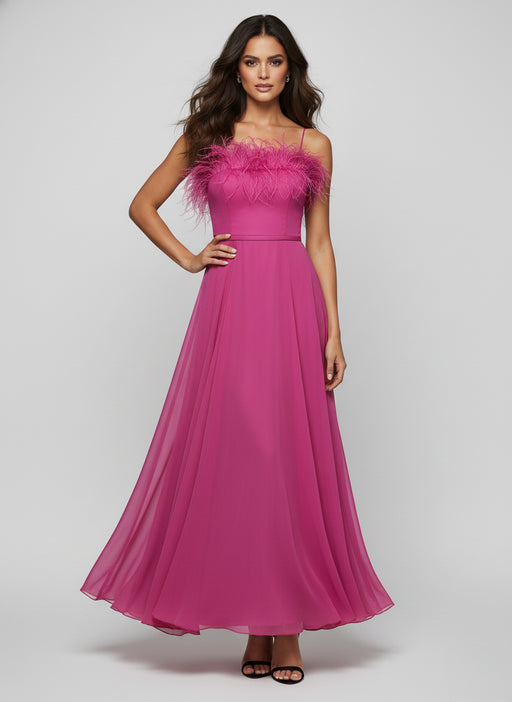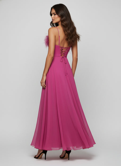 Sırt dekolteli, göğüs kısmı taş işlemeli elbise. İp çekmeleri vardır.