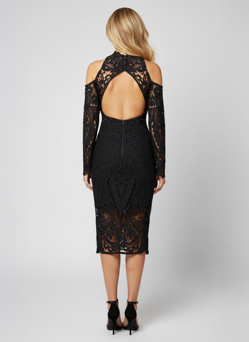 Sırtı açık bir modele sahiptir. Dantel işlemelidir.