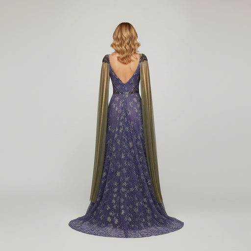 Özel dikim sırt detaylı ipek abiye. Cihan Nacar tasarımlı.