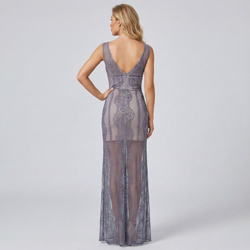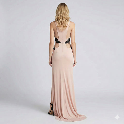 Sıfır kol ,arkası dekolte detaylı uzun elbise