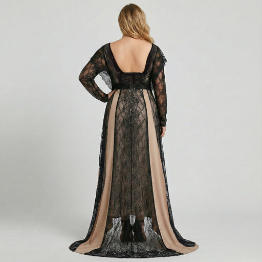 S beden, Astarlı, Önünde dantel işlemeli, Uzun elbise.