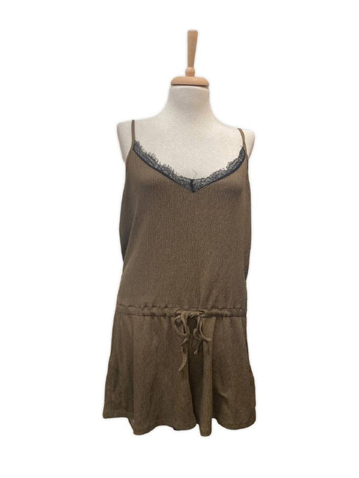 %99 Polyester, %1 elastan. Yakası dantel detaylı, kısa tulum.