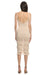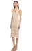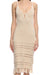 V yakalı, askılı kollu, örgü desenli, göğüs küçük pencere detaylı, eteği püskül detaylı, bej Honest The Label elbis