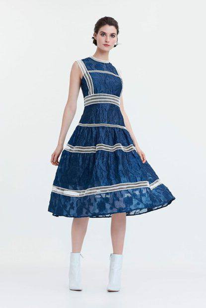 Askılı model, fermuar kapamalı, mavi elbise.