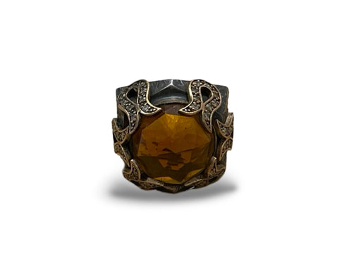Büyük, turuncu yansımalı taşlı yüzük.