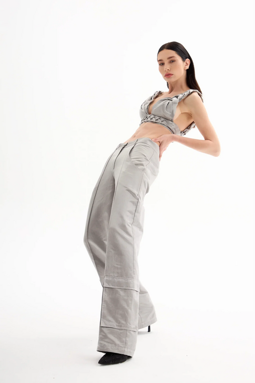 %100 Pamuk Alt kısmı ayarlanabilir deri üzerine klips detaylı, kadın tayt/pantolon model.