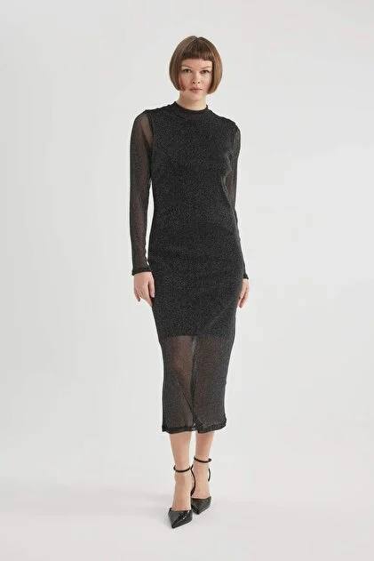 Boyundan Askılı Örgü Midi Elbise %64 Viskon%36 Poliamid