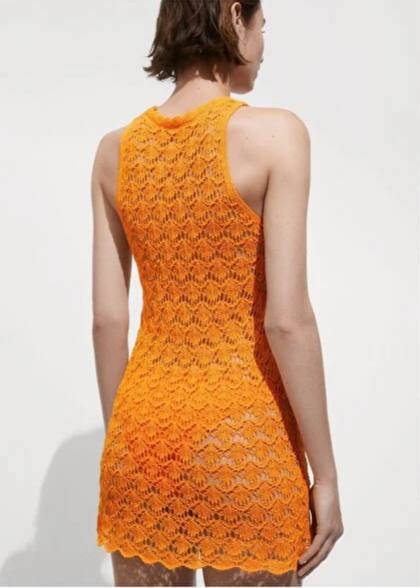 DCEY Turuncu Zincir Detaylı Mini Eşarp Plaj Elbisesi S