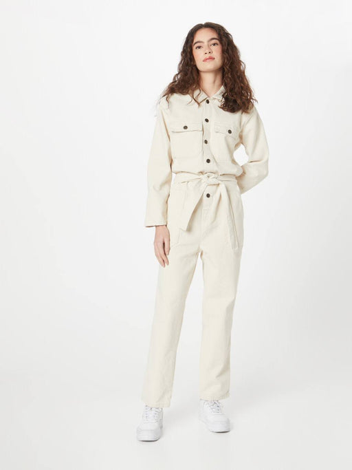 Omuzları apolet detaylı, lastikli bel, cepli, gömlek yaka, uzun kollu, fermuar kapamalı, yeşil Nazlı Ceren tulum%100 Pamukludur