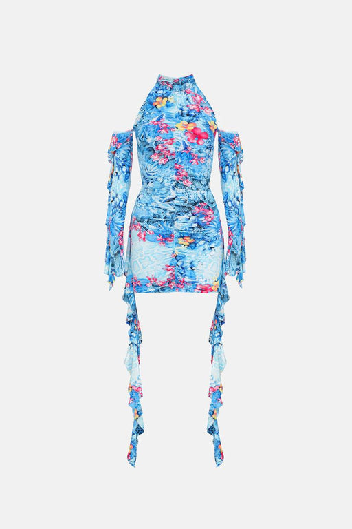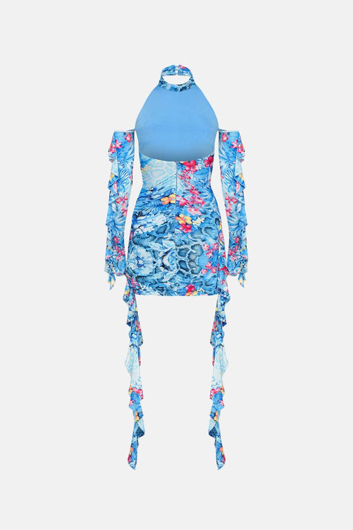 NAIA Mavi Fırfırlı Mini Kadın Elbise XS