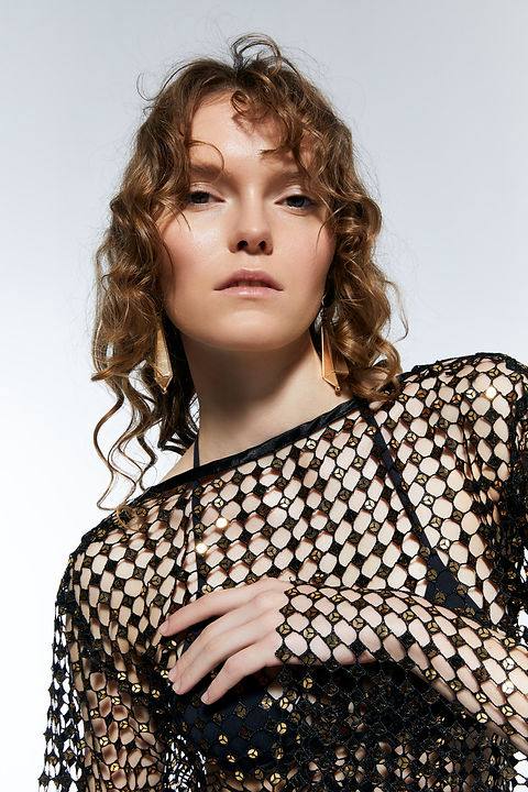 Simli tül astarlı elbise.