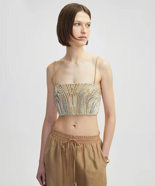 Minimal tasarım çizgisine eklenen renkli hotfix baskıları ile iddianın dozunu yükselten bir parça. Çıkarılabilir cup'ı ile detaylanan bağlamalı bik...
