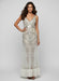 Yoğun taş işlemeli, boncuklu püskül detaylı, zincir askılı elbise.