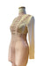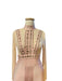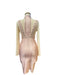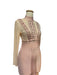 Kolları ve gövdesi pamuklu transparan tülden, metal detaylı maxi kadın elbise.