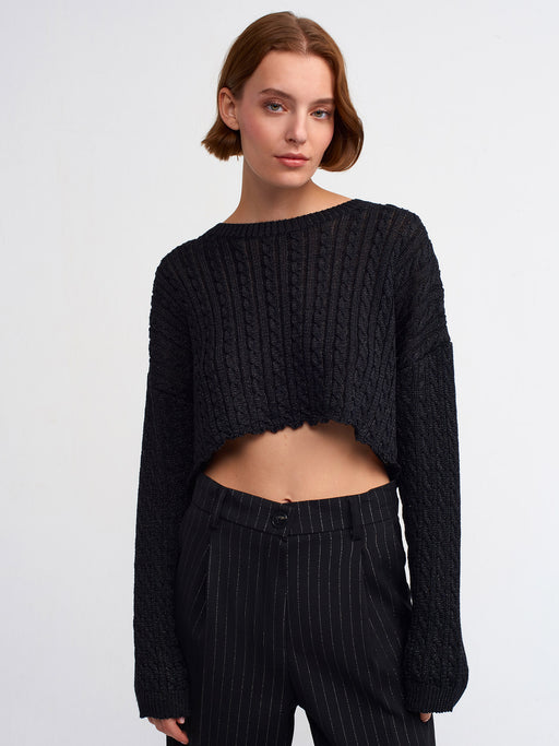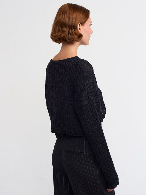 Dilvin Siyah Simli Kadın Crop Kazak STD