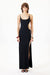 İnce askılı, uzun elbise. Göğüs kısmı düz kesimli. Yan kısmı derin oyuklu ve tek bantla bağlı. Sırtı tamamen açık. Yüksek yırtmaçlı ve dar kesim.