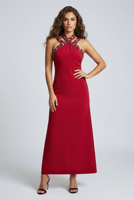 DCEY Kırmızı Kadın Taşlı Elbise S