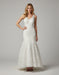 Omuzları dantel detaylı ve kalın askılı , sırt kısmı inci düğmeli uzun gelinlik