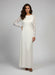 Sırt dekolteli, arkadan düğme kapamalı, dantel detaylı saten elbise.