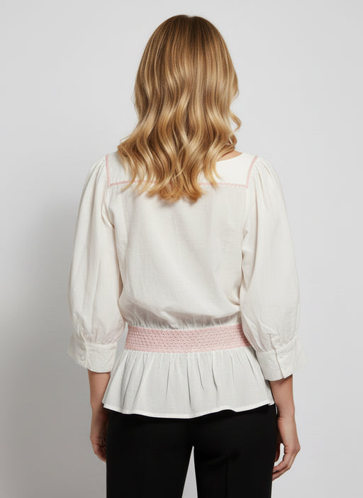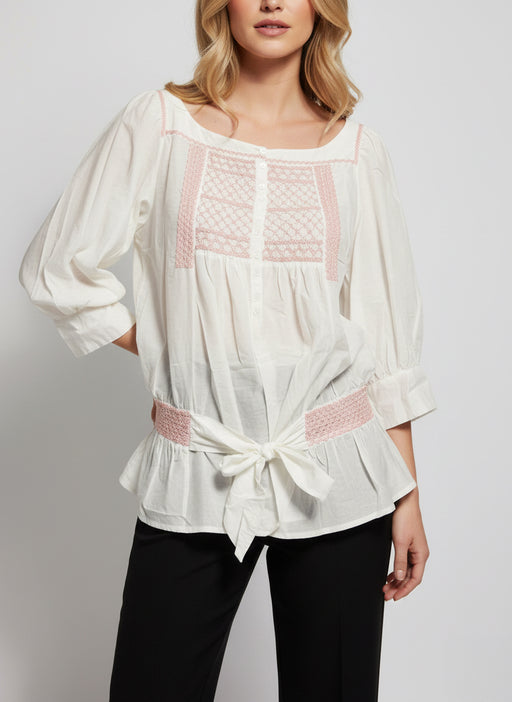 %70 Pamuk, %30 ipek. Pembe nakış detaylı bluz.