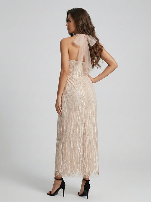 Pul payet, tül detaylı , sırtı fermuar kapamalı elbise.
