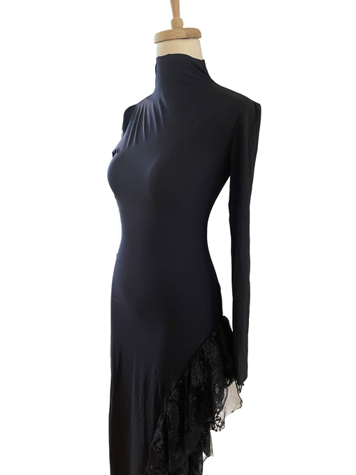 Sol bacak full yırtmaç ve dantel detaylıdır.