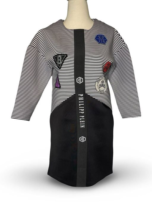 %88 Polyester, %12 likra. Logo işleme detaylı, çizgili elbise.
