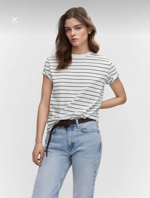 Mango Beyaz Kadın Çizgili Tişört XS
