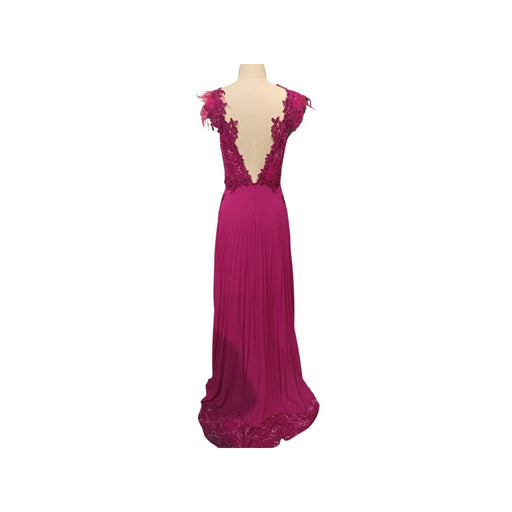 M beden Kolsuz ve arka tarafta ufak yırtmaçlı Tüy ve taş detaylı Dantel işlemeli abiye