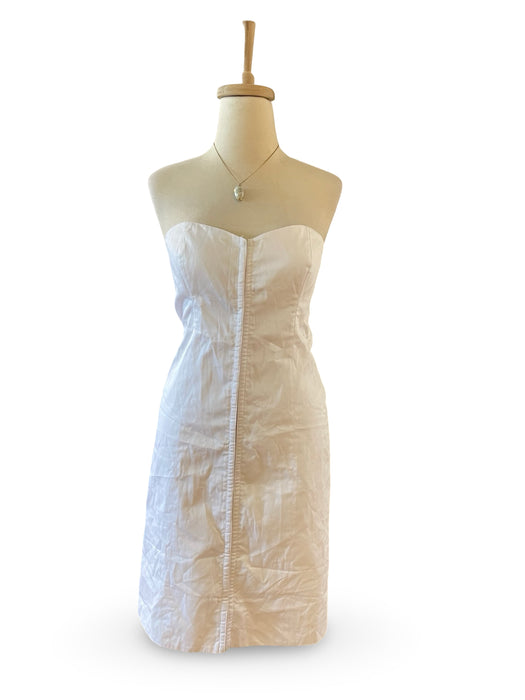 Beyaz straplez poplin kumaştır.