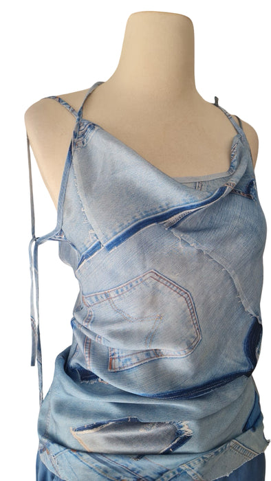 Saten kumaşlı, boyundan bağlamalı kusursuz top.