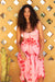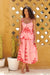 Kırmızı pembe desenli etek.