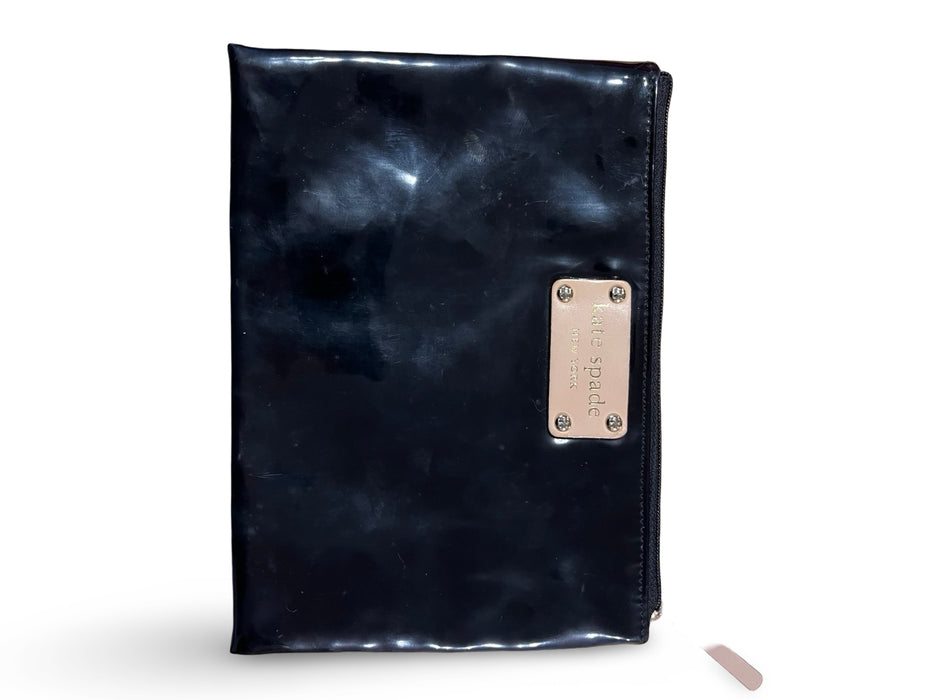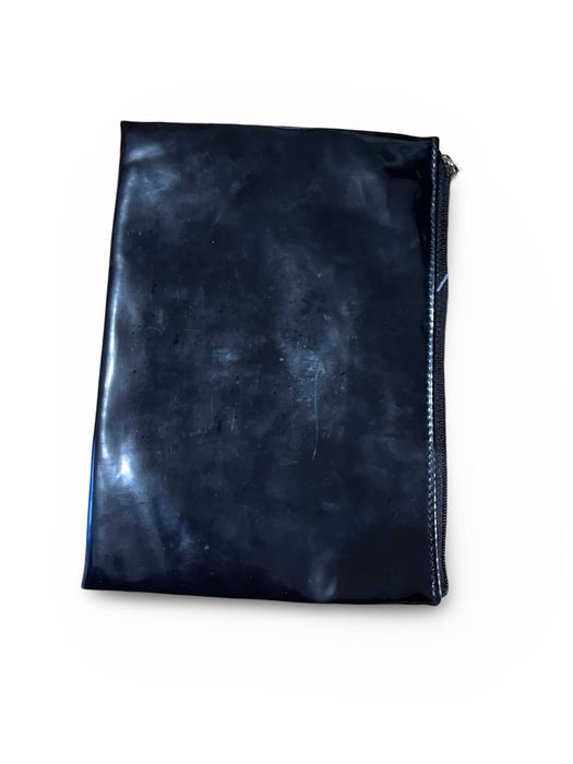 Yazı baskılı iç astar detaylı, marka logolu, parlak siyah çanta.