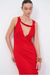 Love My Body Kırmızı V Yaka Kolsuz Kadın Elbise S